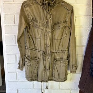 Talula utility jacket. Small stain pictured on the back. Some fraying in the strings