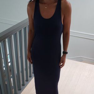 Aritzia/Talula Knit Navy Blue Maxi Dress. Has a slit on the left side. Sexy but not too sexy. Full - 3/4 length depending on your hight. Medium - but runs small. Excellent condition.