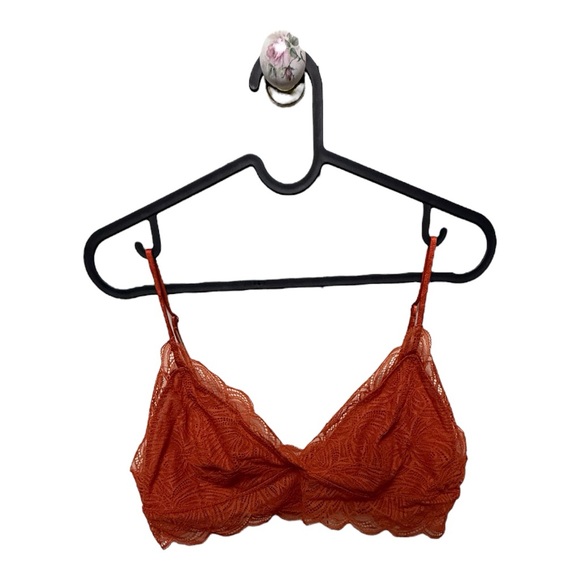 Chic lace bralette in a warm rust shade. Offers style and comfort.
