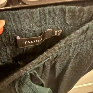 Talula drawstring pants, pockets in front and back, colour is a mix of black, blue, and teal, size XXS, elastic waist and at the ankles, great condition