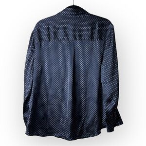 Elevate your style with this classic navy polka dot shirt. Perfect for any occasion, it offers a timeless look with a modern twist.