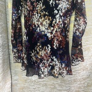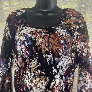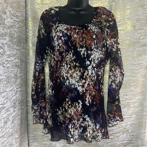 Tamara H. Floral Print Pleated Long Sleeve Semi Sheer Blouse Size L