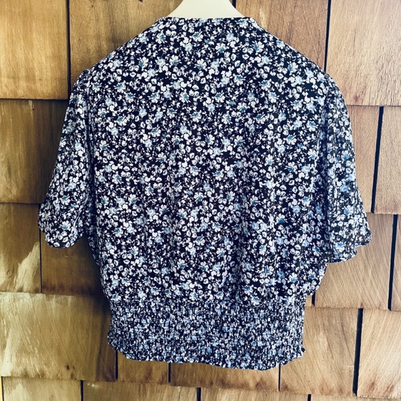 Tamara H. Short Sleeve Blue Floral Chiffon Unlined Blouse Size XL