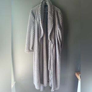 Tamara H. Size Large Luxurious Gray Faux Fur House Coat, belt, pockets