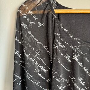Tamara H women's Script Print Layered Semi-Sheer 3/4 Sleeve Blouse Black 3X