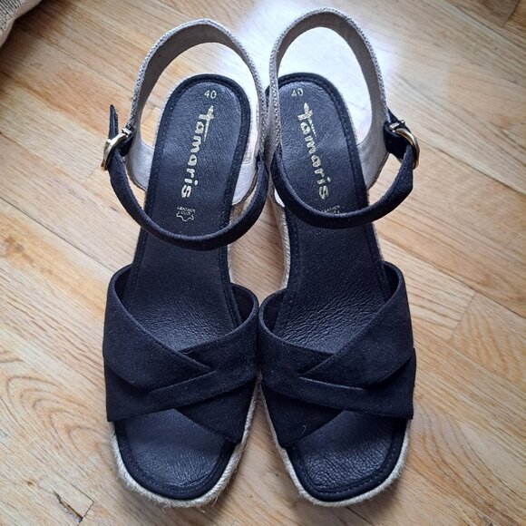 Tamaris brand wedge sandals Heel type: Wedge heel Heel height: 6 cm Insole: Leather Upper: Textile New - never worn Size 9,5 US
