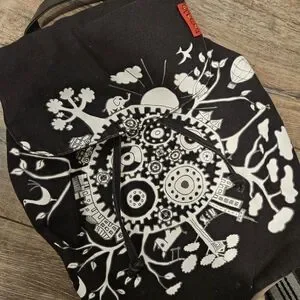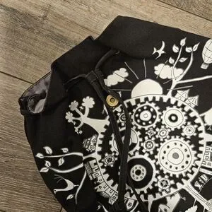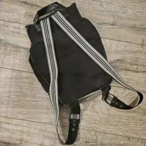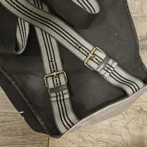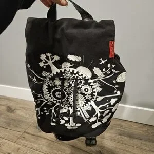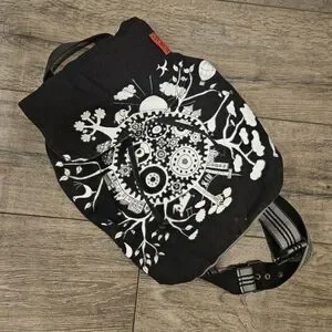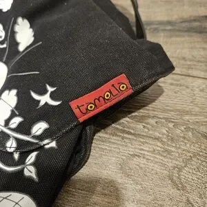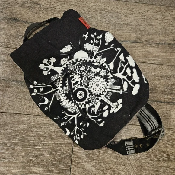 Black Tamelia backpack made by artisans in South Africa. Adjustable shoulder straps and drawstring close. Great for traveling and everyday wear. Like new condition.