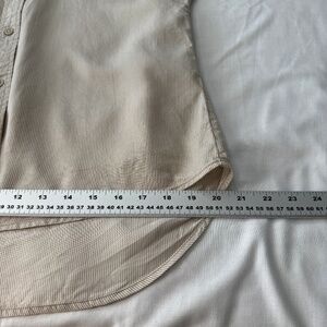 Elevate your wardrobe with this stylish tan button down shirt. Perfect for any occasion, this top offers a classic look with a modern twist.