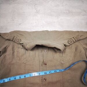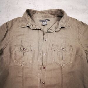Stylish tan button-up shirt with chest pockets. Perfect for casual wear.