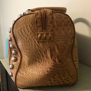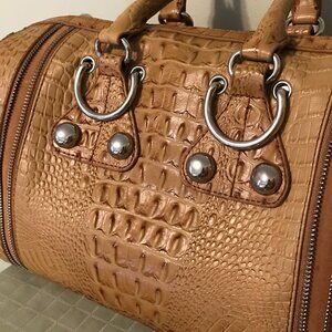 Tan Crocodile Embossed Satchel
