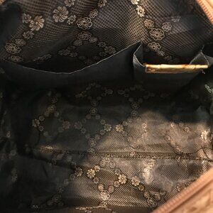 Elevate your style with this chic tan satchel. Featuring a crocodile embossed design and silver-tone accents, this bag is perfect for any occasion.