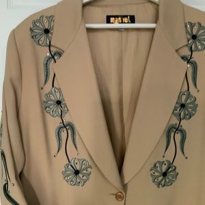 Tan Duster Jacket Embroidered and Embellished by Manuel Cuevas Women’s size 14