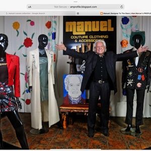 This unique, beautiful, designer jacket is AMAZING. It is in clean, excellent condition. From the Manuel Collection, by Manuel Cuevas, the floor-length tan duster jacket has embroidery and rhinestone embellishments around the collar, down the sleeves, and on the back. It is 100% wool. This is an opportunity to own a piece of country and western/rock and roll history. Manuel Cuevas worked with Nudie Cohn (the famous “Nudie Suits), before striking out on his own. He has dressed the biggest country and western and rock and roll stars in the world: Elvis Presley, Johnny Cash, Dolly Parton, The Rolling Stones, Ozzy Osborne, The Killers, and the list goes on and on and on. Nick-named “The Rhinestone Rembrandt,” he is still designing. This is truly a unique piece, perfect for Stampede events.