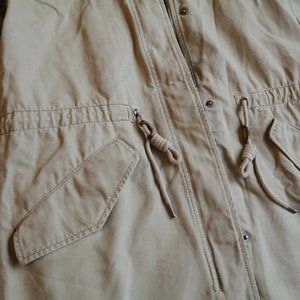 Worn a few times but in great condition. Perfect cooler weather jacket for spring or fall. Extra large hood, optional waist cinch, fits oversized (perfect for layering over sweaters!).