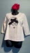 Stylish white long sleeve tee featuring a unique graphic design with black bow, sequins and beads along the neckline. Super adorable. Fits S-M