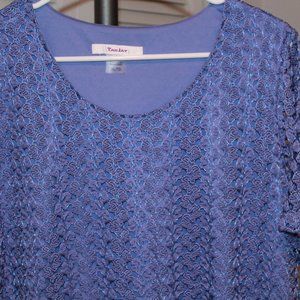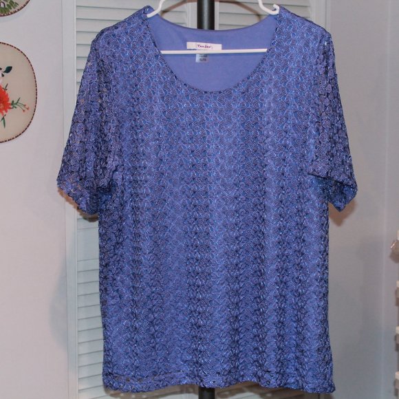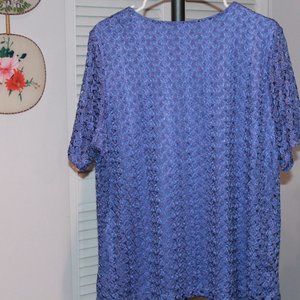 Lovely crochet looking top in perriwinkle blue, very nice for a day or night out.