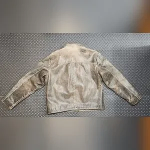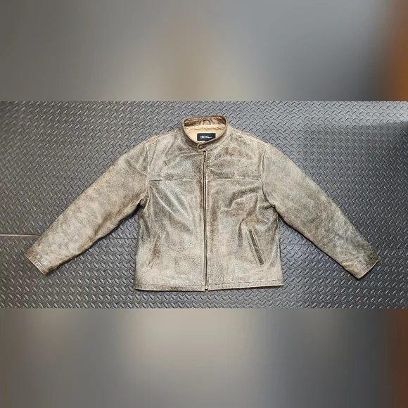 Stylish tan leather jacket perfect for any occasion. Durable and comfortable, this jacket adds a touch of sophistication to your wardrobe. Used but great condition. small hole on inside pocket, as shown in picture.