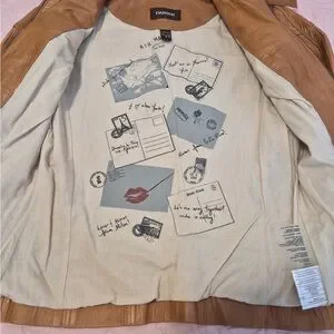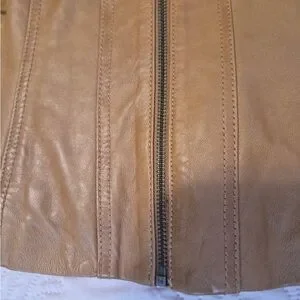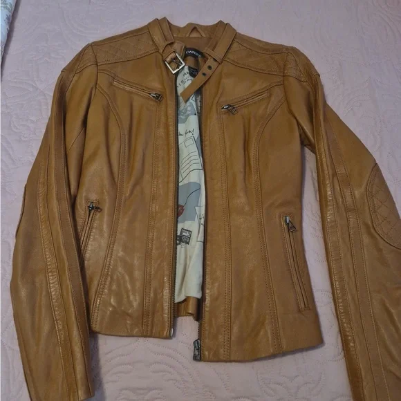 Chic Danier leather jacket. Features zip pockets and stylish stitching. Ideal for layering.