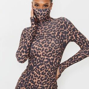📌 leopard jersey material with long sleeves, a figure-hugging fit and a mask detail. Style this with strappy heels and simple accessories to complete the look.