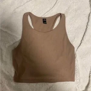 Stylish tan ribbed tank top. Ideal for layering or casual wear. Size L.