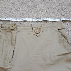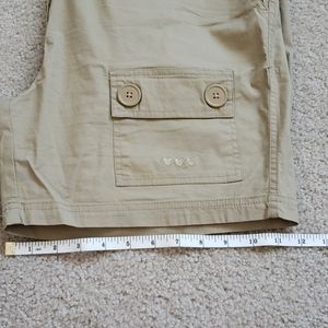 Super cute beige shorts, with pink thread,big buttons, and three 💖 on front left pocket. Some stretch. Worn only once. Like new.