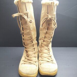 Tan Size 39(approx.8.5 US)side Zip Slight Wedge Faux Fur Suede Lined Boots
