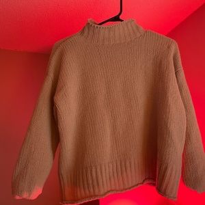 Tan cropped knitted sweater. Medium long neck. Fits an S and an M.