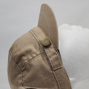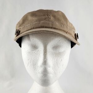 Good pre-owned condition, women's tan army fatigue cap made with 100% cotton and elasticized band, One Size Fits All.