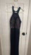 This stunning gown features a sleeveless halter neckline with a delicate lace overlay, creating an elegant contrast against the tan lining. The flowing skirt falls gracefully to the floor, with an elegant slit making it perfect for any special occasion.