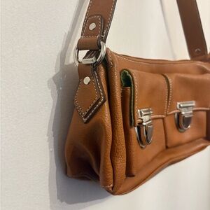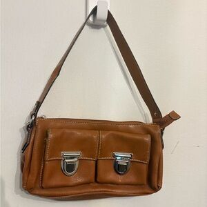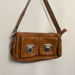 Tan faux Leather Shoulder Bag with Silver Accents