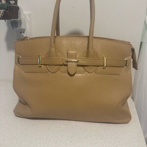 Tan real leather handbag is perfect for any occasion. Its sleek design and high-quality material make it a must-have accessory.