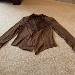 Brown/tan suit with animal patter on the inside by Vex Collection. Was never worn and is in excellent condition.