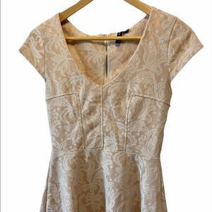 Tan&Cream Lace Overlay Short Sleeve Mini Dress S