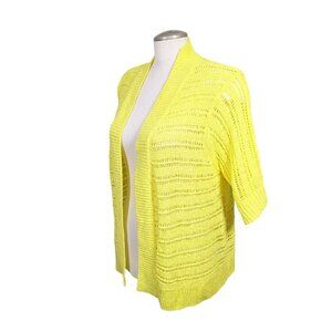 TanJay Cardigan Sweater Jacket Womens Large Butter Yellow Open Knit Open Front