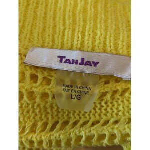TanJay Cardigan Sweater Jacket Womens Large Butter Yellow Open Knit Open Front