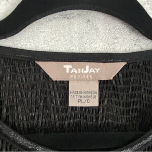 TanJay Dress Top Stretchy Crepe Fabric Black Sz Large Cap Sleeve