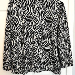 TanJay Petite black and white jacket, like new condition, zip front. Knit material, cardigan like.