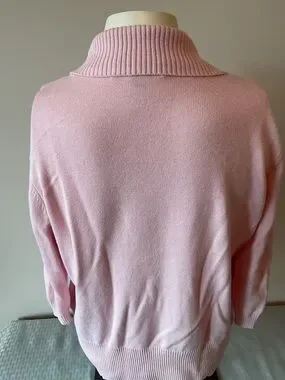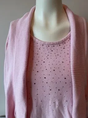 Soft pink knit sweater with scattered rhinestone accents on the front.