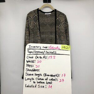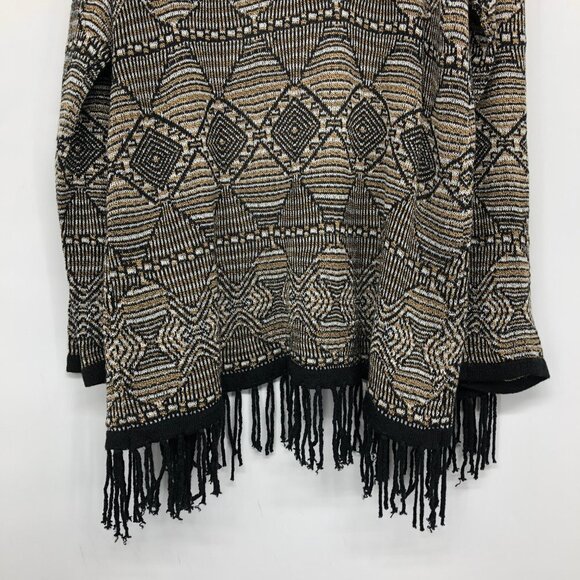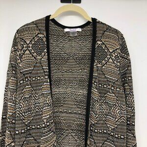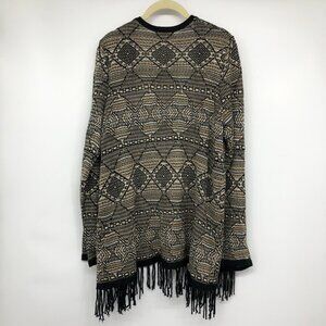 TanJay Tan / Brown Abstract Print Open Cardigan Fringe hem size M