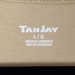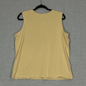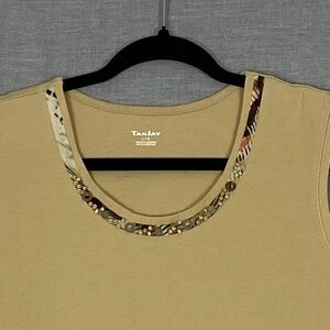 TanJay tank top. Women's Tag Size Large. Cotton / elastane blend. Mustard yellow with brown contrast collar accent with beading. Lots of stretch.