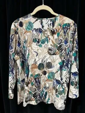 TanJay colourful print top with gold circle overlay and 3/4 sleeves, size S. Ptp 19.5” T353