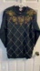 TanJay Vintage Black & Gold Floral Sweater With Gold Beading Long Sleeve Oversized Fit Size L
