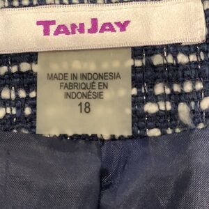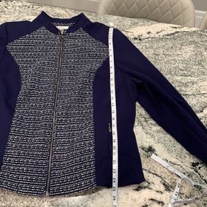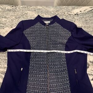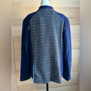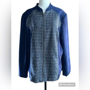 TanJay zip up sweater/jacket size 18, blue/white with silver specs, 2 zippered pockets