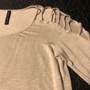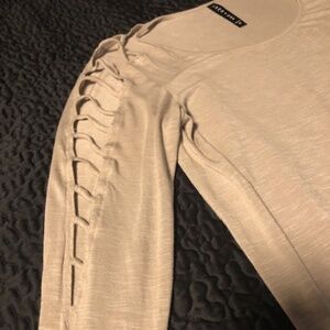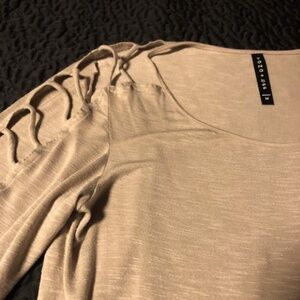 Tana + Bee Funky Shoulder Cut Outs Beige Silky Top