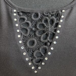 Tango Mango Black 3/4 Sleeve Blouse With Embroidery And Rhinestones Size Med