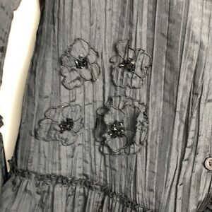 Black flowers embellished with beadwork and gorgeous detail to the front.