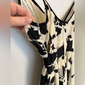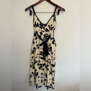 Tango Mango Elegant Black and White Floral Dress with waist bow size medium