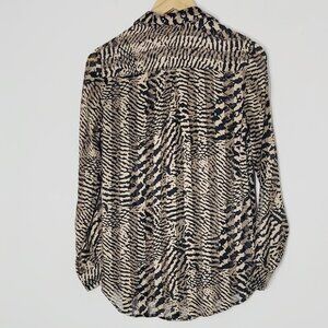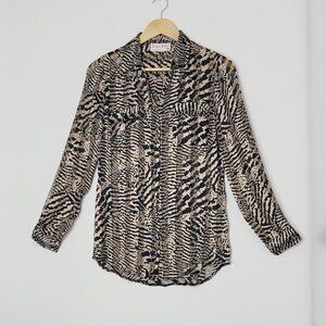 Tango Mango Women's Black & Tan Leopard Print Collared Button Down Shirt Size XS