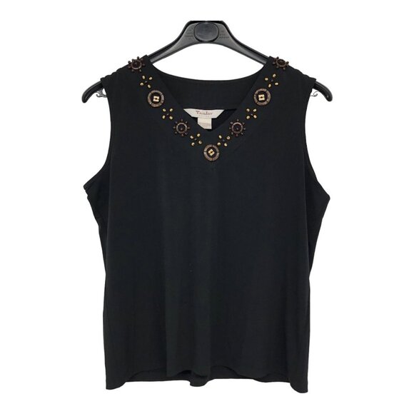 Tanjay Black Sleeveless V-neck beaded neckline tank top size S petite
