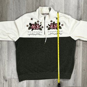 Tanjay Flowers Women's 1X Quarter Zip Fleece Sweater